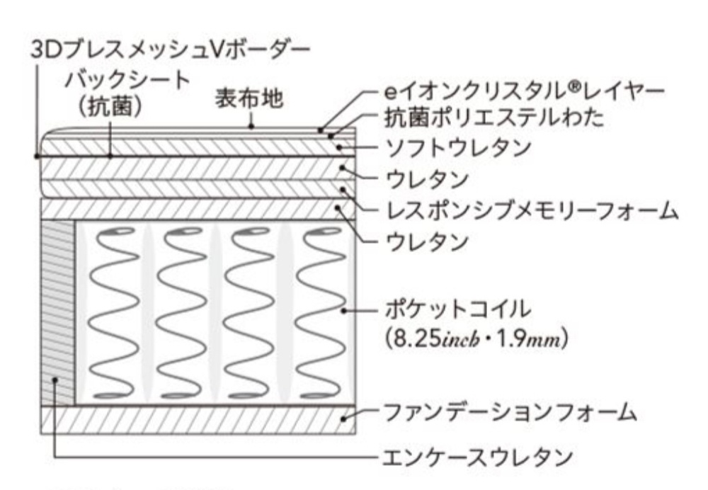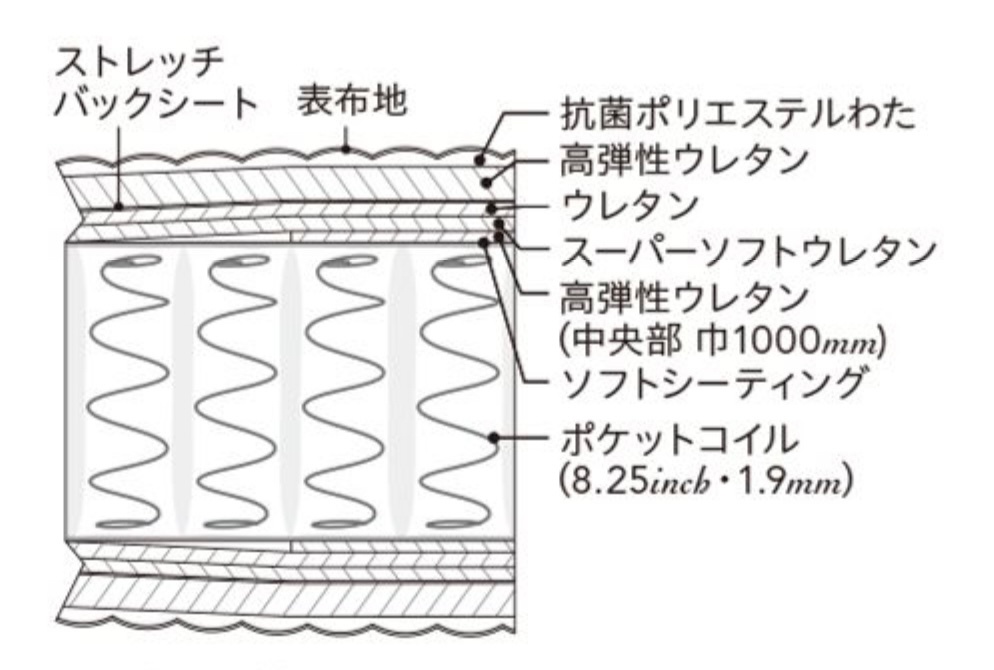 ハイクラスホテルで多く採用されている8.25インチポケットコイル(線径1.9mm)を使用しています。