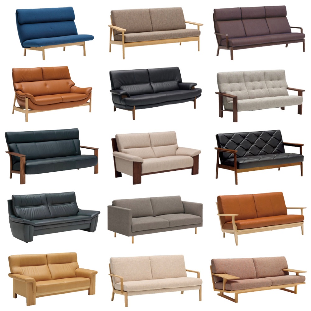 人気の本革張りソファーから優しい布張りソファーまで幅広く品揃えしております。ぜひご体感ください。