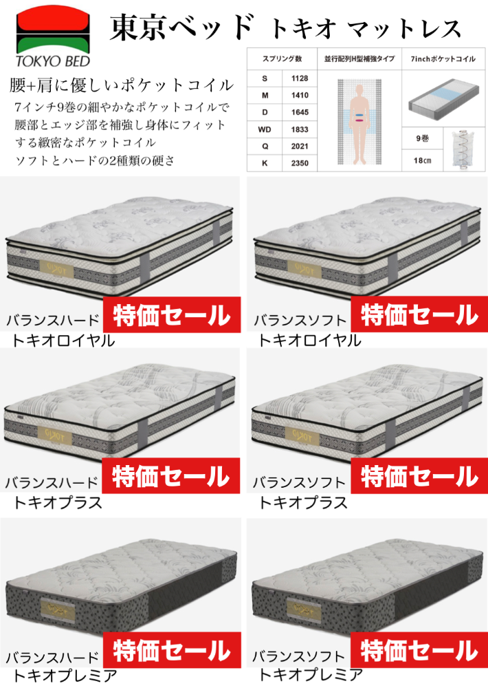 東京ベッドマットレス全アイテム全サイズが特別割引でお買い求めいただける東京ベッド大特価セールがソメイユ流山ショールームにて開催